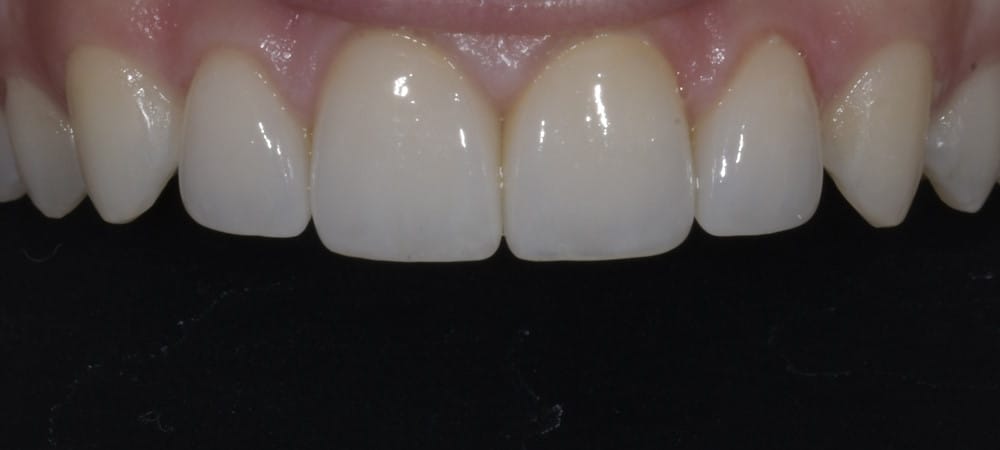 This patient’s composite bonding had stained over time. We replaced it with new bonding on her front 4 teeth. No enamel was removed for this procedure.