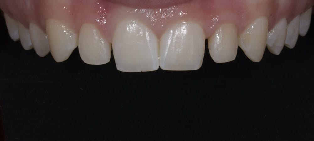 This patient had small lateral incisors. He had orthodontic treatment followed by composite bonding to fill the spaces.